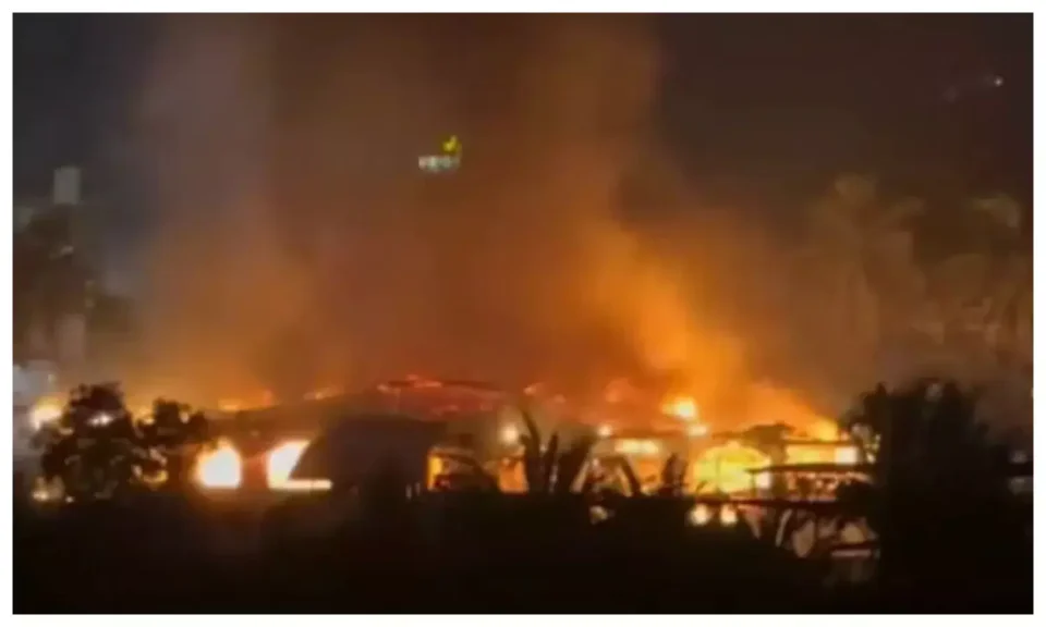सिलिंडरच्या स्फोटामुळे ही आग लागल्याचा पोलिसांना संशय आहे.