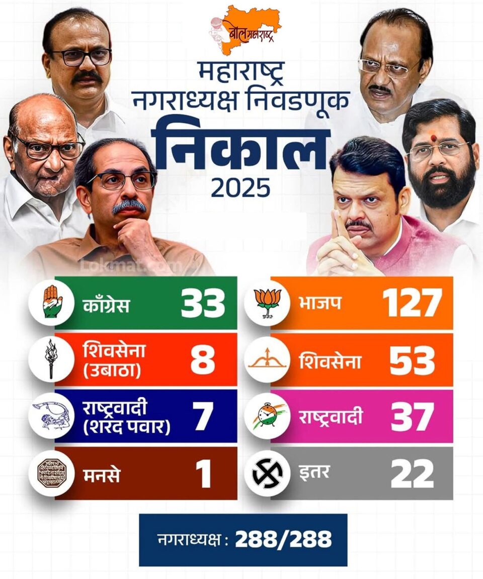 नगरादयक्ष काँग्रेस चा बहुमत मात्र महायुती कडे..