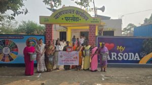 मुख्यमंत्री पंचायत राज अभियान अंतर्गत परसोडा ग्रामपंचायत द्वारे महिलांना प्लास्टिक निर्मूलन व कचरा व्यवस्थापन करणे संदर्भात हळदी कुंकवाचे औचित्य साधून गावातील प्रत्येक कुटुंबातील स्त्रियांना ग्रामपंचायत मध्ये कचरा कुंडी चे वाटप करण्यात आले ह्यातून प्लास्टिक मुक्त गावाचा सामाजिक संदेश देऊन गावातून प्लास्टिक हद्द पार करण्याचा उद्देश आहे. ह्यावेळी सरपंच प्रा स्वप्ना अतुल पाटील देशमुख, उपसरपंच सुनंदा पत्रे, मंगला चौधरी, अर्चना राठोड ग्रामपंचायत सदस्य, रोशनी ग्रामसंघ अध्यक्ष स्वाती पत्रे, पशु सखी आशा सोळंके, प्रभात संघ प्रमुख संध्या देशमुख, मंदा कोल्हे, जनिता गुडे, मंजुषा मिसाळ, राजश्री कोल्हे, सारिका कोल्हे, नलू पारधी, इंदिरा सोळंके, कमला जुडे, गहुकर्णा कुडवे, अनुसया पत्रे,रेखा गुडे, वनिता शेळके, वनिता डहाणे,सुनिता देशमुख, लक्ष्मी सोळंके, सुनिता सोळंके, बेबीबाई राठोड,पायल पवार, कल्पना जाधव, सविता जाधव, पुष्पा जाधव, चंदा जाधव यांनी सदर कार्यक्रम यशस्वी करण्यासाठी विशेष मेहनत घेतली.