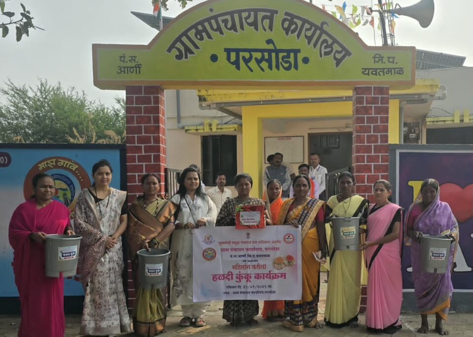 आर्णी :परसोडा ग्रामपंचायत द्वारे प्रत्येक कुटुंबातील महिलांना प्लास्टिक निर्मूलन व कचरा व्यवस्थापण करणे संदर्भात हळदी कुंकवाचे औचित्य साधून कचरा कुंडी चे वाटप सरपंच सौ स्वप्ना अतुल पाटील देशमुख यांचे उपस्थितीती मध्ये करण्यात आले.
